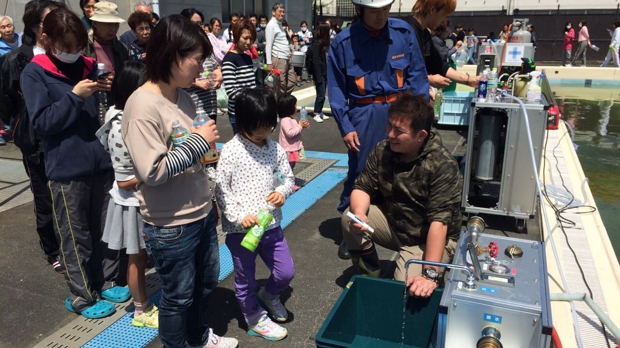 日本国内ではこの30-60年内に必ず発生すると言われている大規模災害時の安全電で安心な飲料水及び大量に必要な生活水(環境を担保する為の洗浄水など)の確保が可能な装置の普及。海外ではまだまだ多くの方々が飲料水及び生活水の確保が困難な状況です。