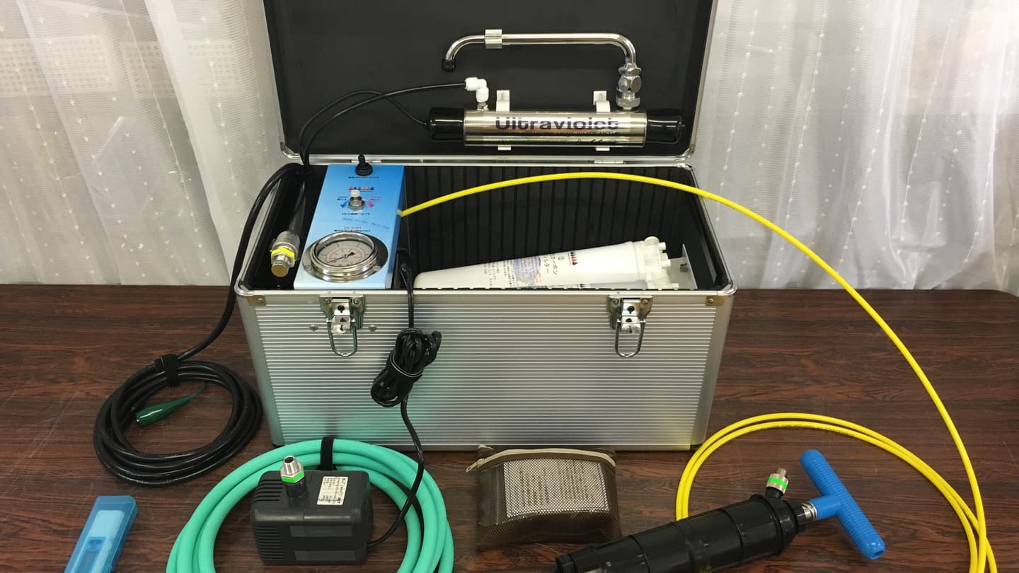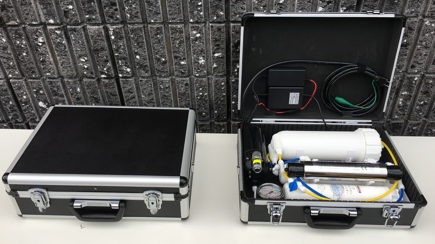 軍事規格であるMIL規格のケースに浄水に必要な付属品すべて一式が収納されております。